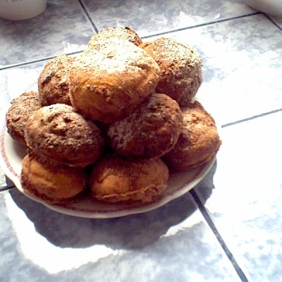 Édesítőszerrel meghintve, melegen tálaljuk.